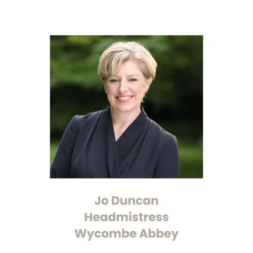 Jo Duncan is a graduate of the University of St Andrews where she read for a joint degree in English Literature and Theology. She grew up in Northern Ireland and attended a girls’ grammar school. She undertook her PGCE at Homerton College, University of Cambridge. Her first teaching post was as a teacher of Religious Studies at The Latymer School in North London – from there, she moved to Benenden School in Kent as Head of Department and Deputy Housemistress. She has held two previous Headships and was appointed Headmistress of Wycombe Abbey in September 2019.